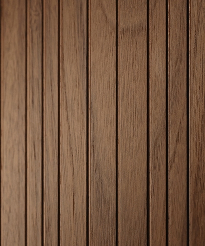 SELECT — коллекция минималистичных дверей с фрезеровкой по натуральному шпону. Рельеф на поверхности полотна создаёт игру света и тени, добавляя пространству динамичности и визуального объёма. Двери SELECT в сочетании со стеновыми панелями и мебельными фасадами, повторяющими лаконичный дизайн, создают единое стилевое решение.